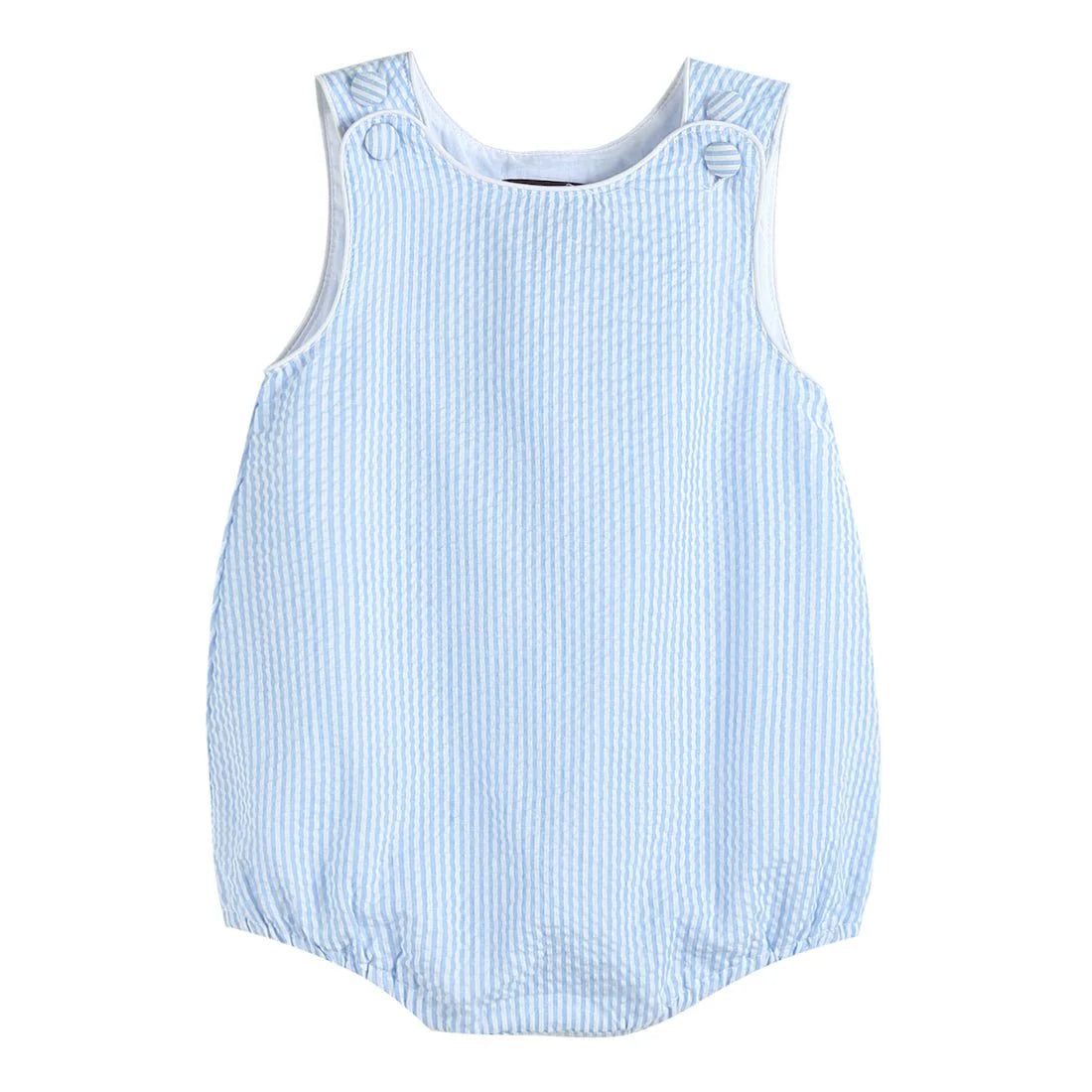 Lil Cactus -Light Blue Stripe Seersucker Baby Romper