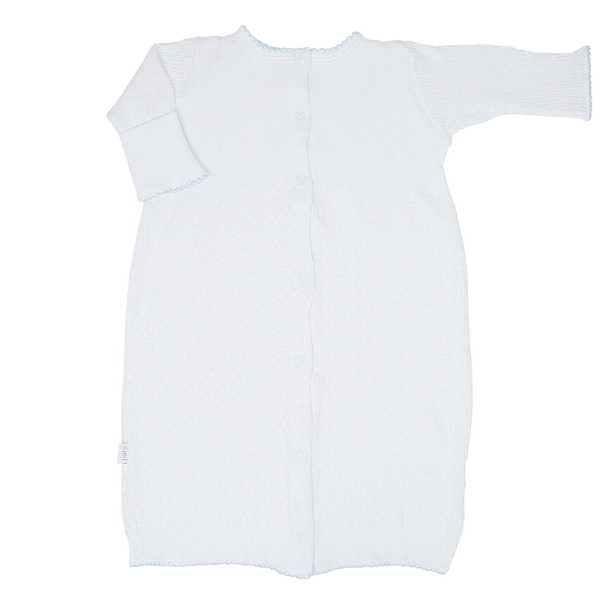 Paty - Paty Knit Full Snap Gown With Blue Trim