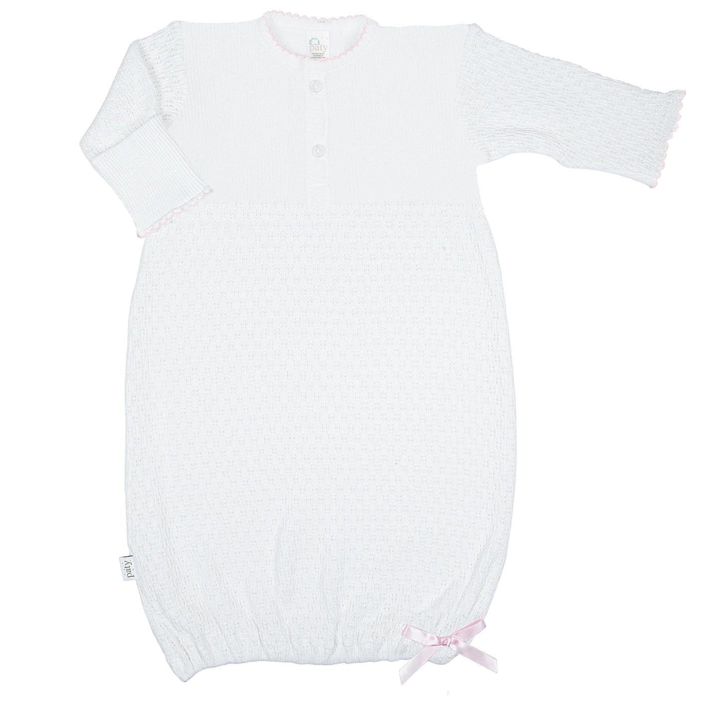 Paty - Paty Knit Placket Gown - White with Pink Trim