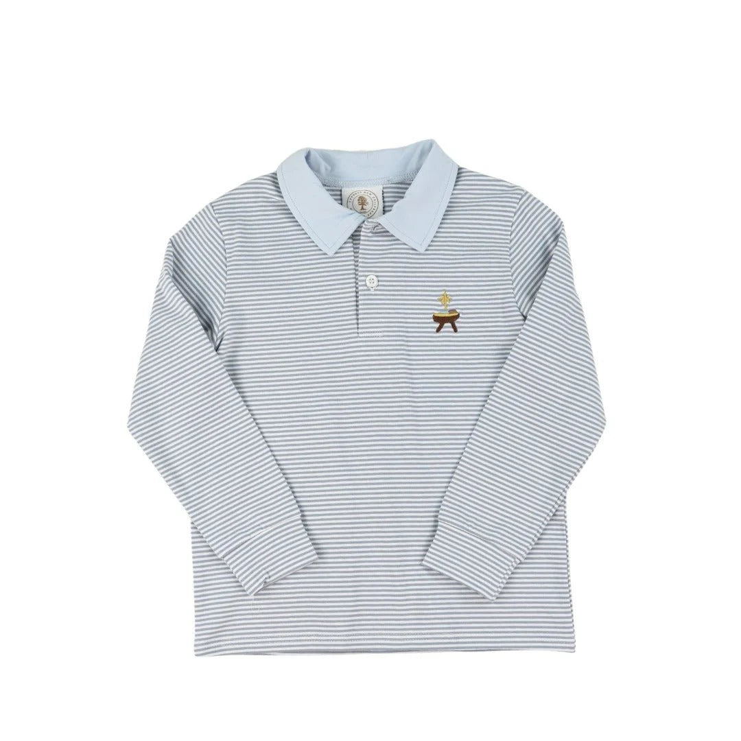 A timeless style with a heartfelt touch, our Boys’ Oh Holy Night Polo is perfect for the holiday season. Designed in soft blue and white stripes with a crisp contrasting collar, this classic polo features an embroidered manger detail on the chest—a sweet reminder of the season’s true meaning. With its relaxed fit and breathable cotton stretch, it’s as comfortable as it is special. For a picture-perfect sibling look, pair it with the coordinating girls’ dress.