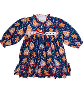 This precious nightgown features our Gingerbread fabric. There is a lace & ribbon trim accent on the chest & a double ruffle hem. The perfect outfit to help create those special Christmas morning memories!