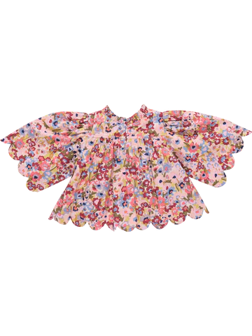 Twirl-ready and oh-so-charming, the Scalloped Misha Top features a delicate burgundy sketched floral print that brings garden-inspired elegance to everyday wear. The signature scalloped hem adds a sweet, feminine touch that catches eyes and compliments. Perfect for playdates, family gatherings, or simply making ordinary moments feel special, this blouse pairs beautifully with skirts, shorts, or leggings for endless styling possibilities.
