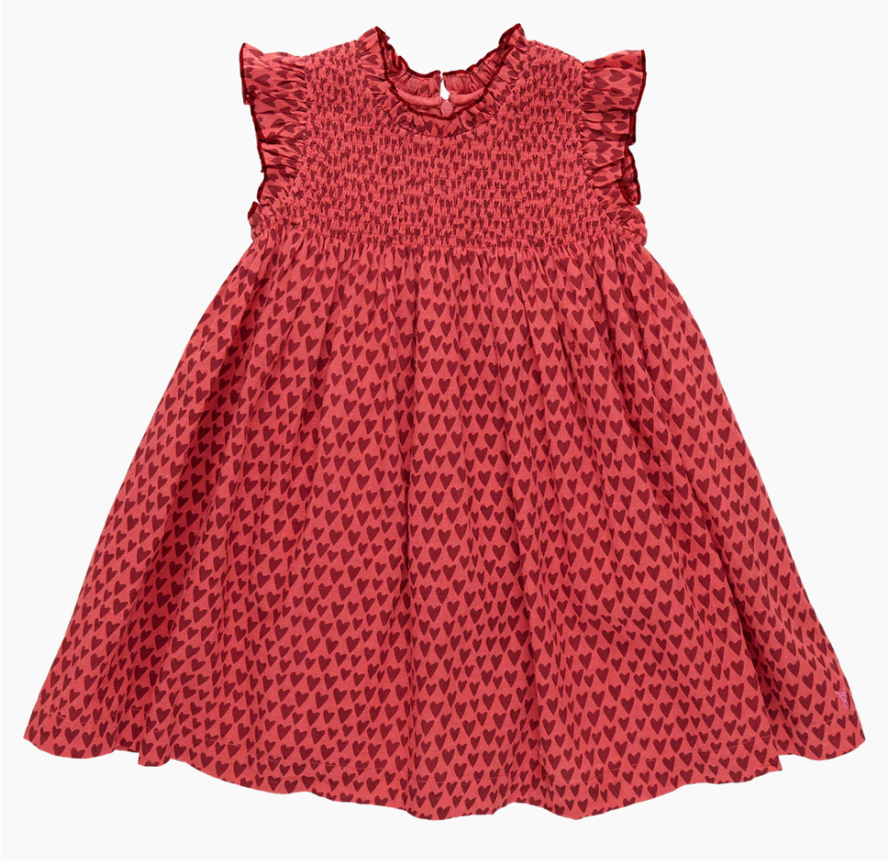 Pink Chicken - Girls Stevia Dress - Red Mini Hearts