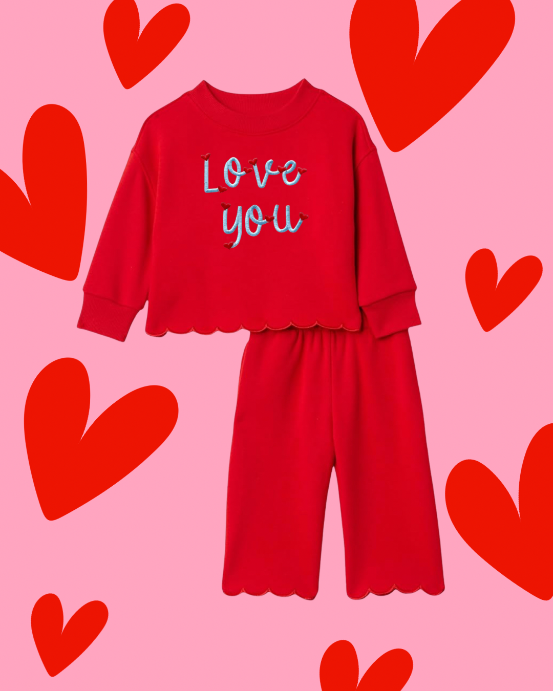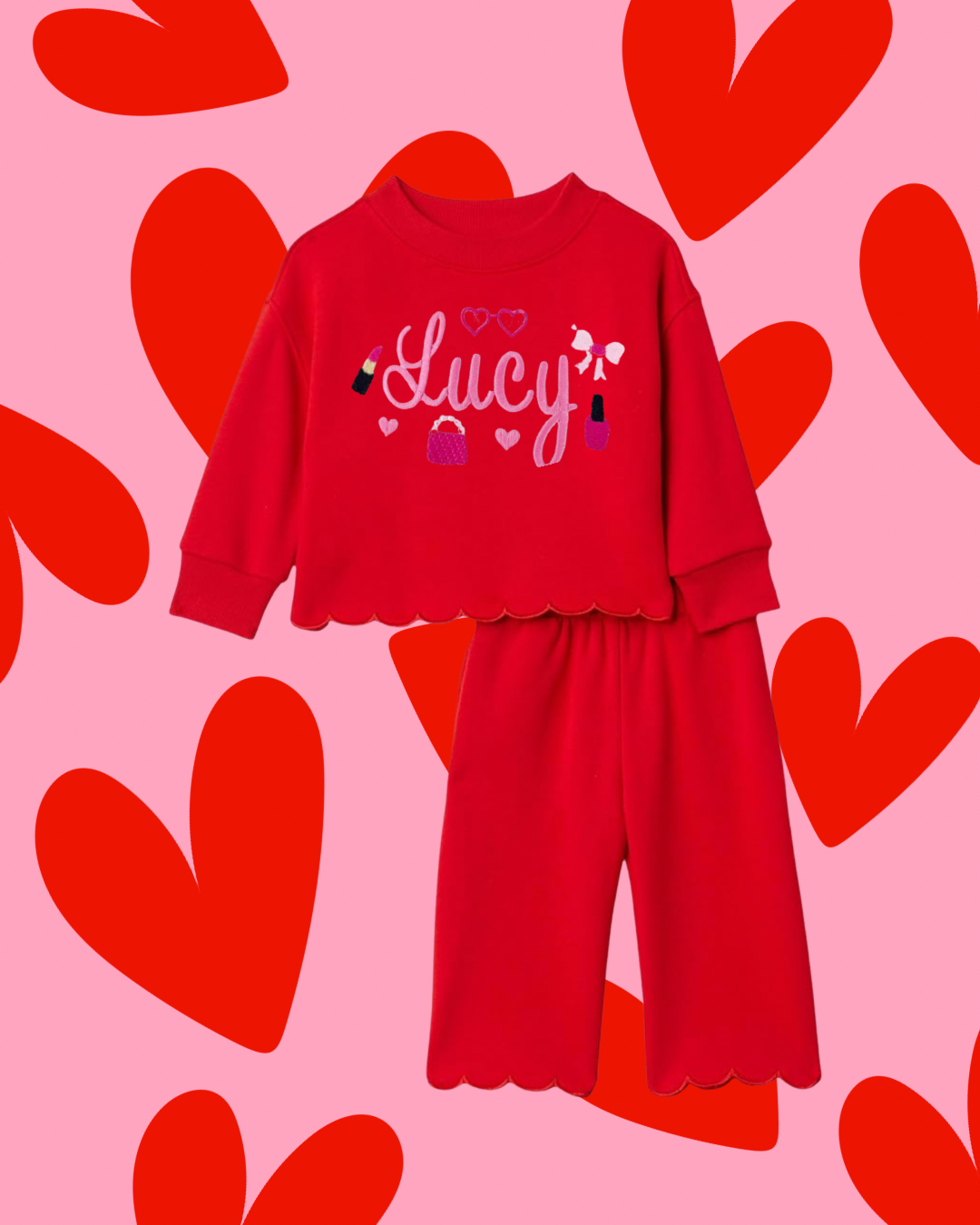 Red Scallop Set with Monogram