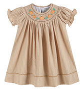 Lil Cactus - Light Brown Pinstripe Pumpkin Smocked Bishop Dress