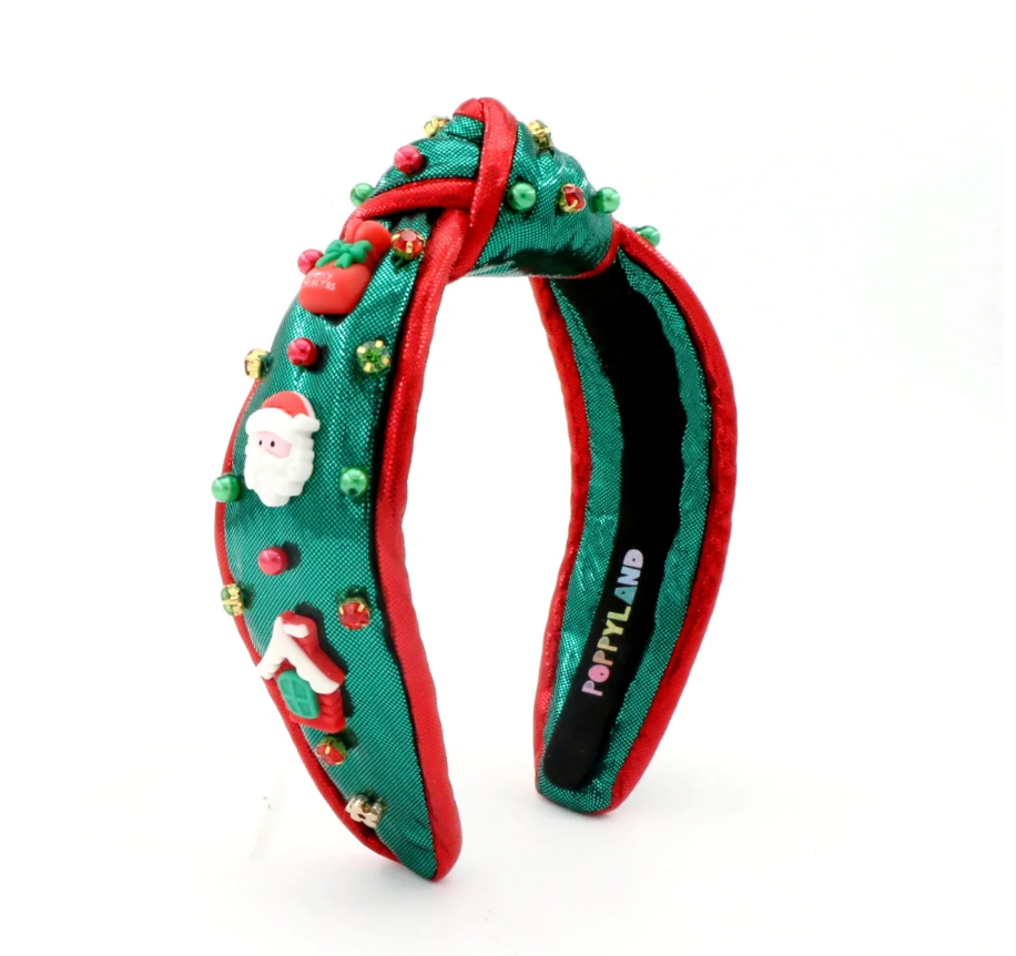 Elevate your holiday wardrobe with the Ho Ho Ho Headband from Poppyland, your kingdom of cuteness. This headband features a red and green shimmer base adorned with charming Santa, reindeer, and other Christmas motifs, ensuring you sparkle at every festive occasion. Perfectly versatile, it adds a touch of holiday magic to all your seasonal outfits. Get ready to spread some cheer and shine brightly this Christmas with Poppyland's enchanting headwear.