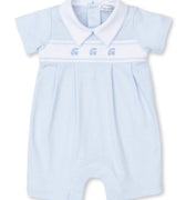 Sweet stripes and beautiful train car embellishments cover our cute, collared playsuit for your baby. Made from the softest Pima cotton for ultimate comfort.