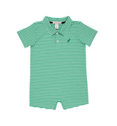 Our Sir Proper's Romper in Kiawah Kelly Green Stripe with Kiawah Kelly Green Stork is a comfy, cozy & cute option for your little gent! Featuring leg snap closures for easy diaper changes, your little guy will look so handsome in this little romper.