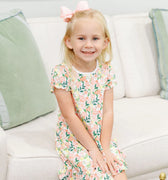 Pink, yellow and green watercolor florals are the highlight of this Daffodil collection! The tones are perfect for the spring and summer season. Available in a variety of styles for sister sets! Dress it up or dress it down, we adore our pima for all occasions! Daffodil Play dress available in 2t-10y.