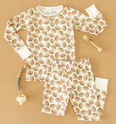 A two-piece pajama set that's perfect for a restful night. Crafted from luxurious Pima Cotton, the long-sleeve top and pants feature a playful all-over print of charming footballs.