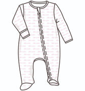 Celebrate the special bond between siblings with our Little Sister Print Zip Footie! Crafted from luxurious Pima Cotton, this footie offers unparalleled softness and comfort for your little one. The design features an all-over "little sister" print in a gentle pink, highlighting her special role.