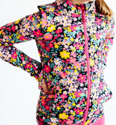 Mila & Rose - Flexible Floral Full-Zip Ruffle Active Jacket