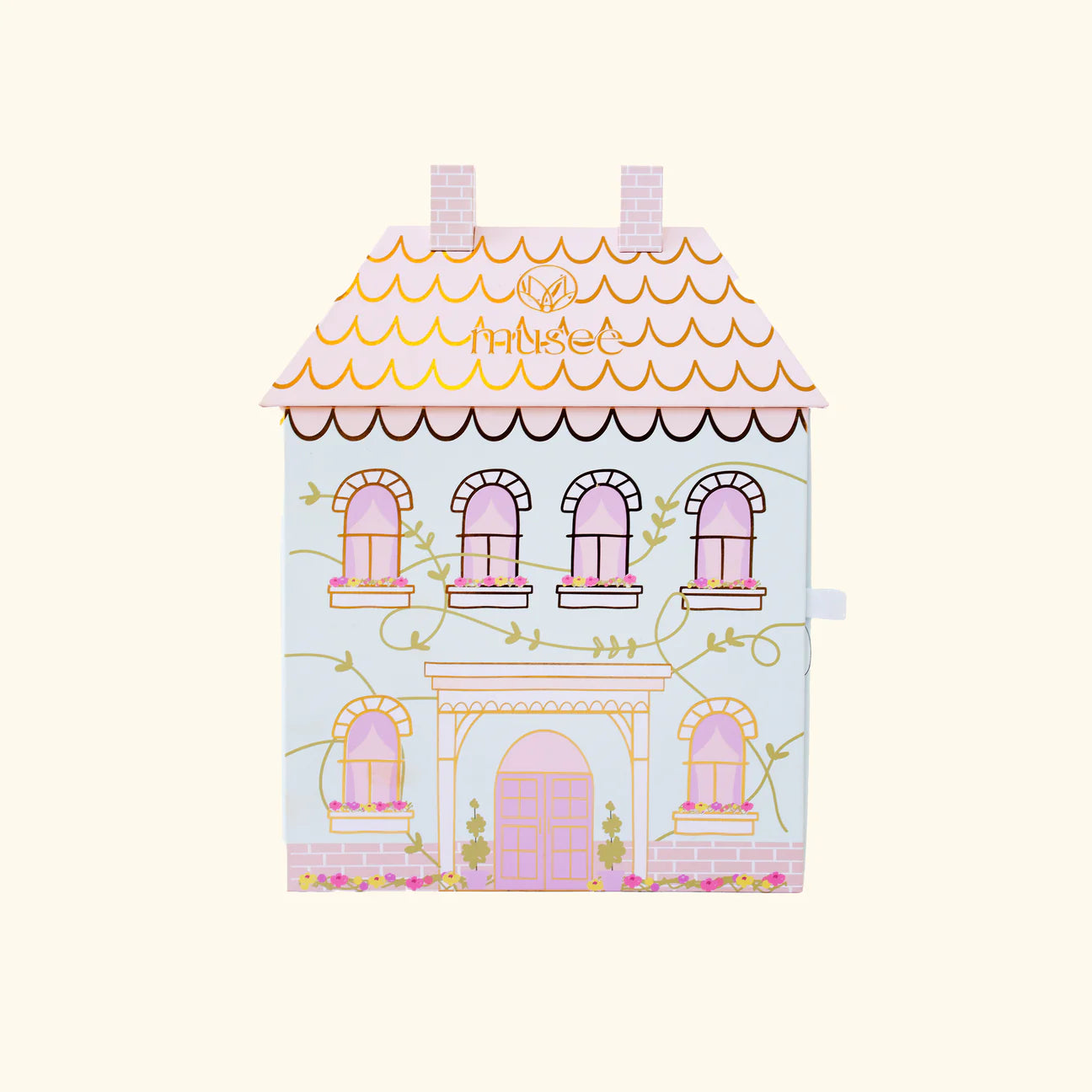 Use your imagination with this adorable abode! Fill the rooms with Musee peg doll friends that you’ll find nestled in each of the 4 bath balms! This doll house box features four colorful bath balms tucked away into a kitchen, living room, bedroom and bathroom!