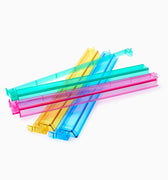 Each set includes four acrylic racks with attached pushers in pink, blue, yellow, and green, with a stack length of 18.5 inches. Don't forget to complement your set with our Let's Rack and Roll bag, perfect for storing your racks and pushers in style between games.